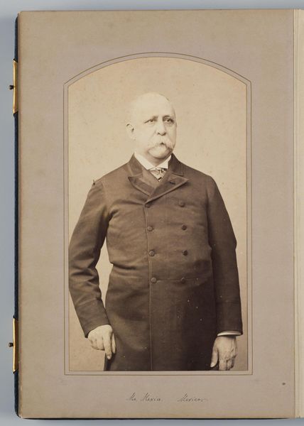 Curator: This is a photographic portrait of Henry G. Davis, a U.S. delegate, captured by Mathew Brady. Editor: It’s fascinating how the sepia tones lend a sense of gravitas. It’s a very controlled image, almost staged, highlighting the attire and pose. Curator: Brady was known for documenting prominent figures. The careful composition likely aimed to convey Davis’s status and respectability. It's about the projection of power. Editor: Absolutely. I wonder about the photographic processes involved. What kind of paper, which chemicals—these choices directly influenced the final image and its preservation. Curator: The photographic portrait became a vital means of immortalization. It's not just about likeness, but also about constructing a visual legacy, a cultural memory. Editor: It’s also a product, an object. The materiality speaks to the industrialization of image-making, the rise of photography as a business, as well as a form of record. Curator: Indeed, the photograph embodies both the individual and the broader societal forces at play. Editor: It makes you think of the layers of meaning and material interwoven in this single image.