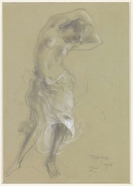 Armand Rassenfosse made this standing nude figure in pastel, without a known date. What I like about this piece is the economy of means. The marks are so delicate, almost tentative. They create the impression of a figure emerging from the ground of the paper. Check out the blue-ish marks around the figure's head and shoulders, see how they dissolve into the surrounding space. The paper itself is part of the image, providing the overall tonality and sense of light. Rassenfosse’s lines don't define the figure so much as suggest a presence, and the pose itself, with the figure looking downward, and the hand holding a towel, gives the piece a sense of intimacy. For me, it recalls Degas’ pastel drawings, but with a softer touch. It's like Rassenfosse is whispering a secret about the human form, rather than shouting it from the rooftops. It reminds me that the power of art lies not in what it shows, but in what it suggests.