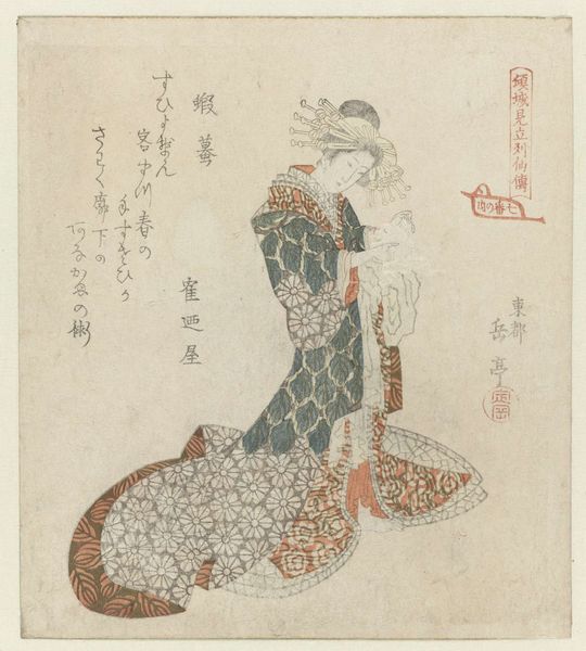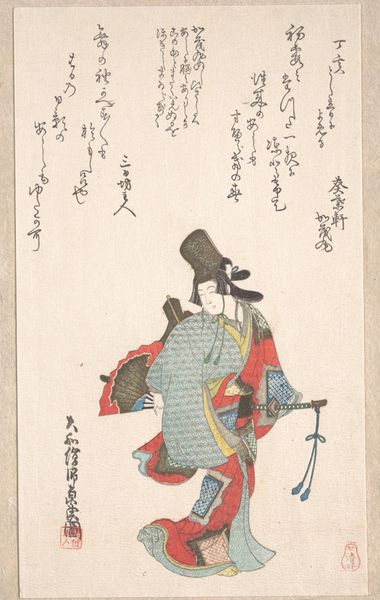 This woodblock print depicts a standing lord adorned in a blue over-kimono. The sword is the central element, clutched with both hands as the figure stares down with tragic intent. The sword, a symbol of power and authority, here becomes an instrument of internal conflict and potential self-destruction. The motif echoes through history, from ancient Roman suicides to the tragic figures in Shakespeare. Across time, the act of turning a weapon upon oneself carries a profound weight. Consider the emotional undercurrent: the psychological burden of honor and duty. The image taps into a collective memory of sacrifice, engaging us on a deep, subconscious level. The tension between outward appearance and inner turmoil speaks volumes about the human condition. Like a recurring dream, this symbol resurfaces and evolves. It embodies not only despair but also a complex interplay of cultural values, personal agency, and the timeless struggle against fate.
