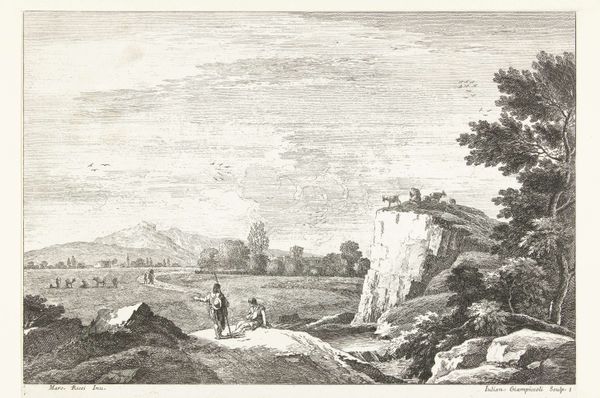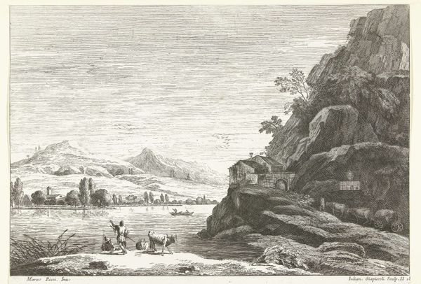 Here is the 'Landschap met enkele figuren aan het water' by Louis E.F. Garreau, a drawing held in the Rijksmuseum. The figures stand near water, a motif seen across cultures as symbolic of transition and reflection. Note the posture of the seated figure, reminiscent of melancholic figures in classical art, a pose that speaks to contemplation. This echoes in later works like Caspar David Friedrich's landscapes, where solitary figures confront the immensity of nature, stirring feelings of the sublime. The visual language of introspection evolves, yet the underlying human experience remains—a dance between our inner world and the external landscape. This landscape serves as more than just a backdrop. It represents the human psyche, a stage where emotions play out. The scene engages us on a subconscious level, inviting reflection on our own place within the vast, ongoing narrative of existence.