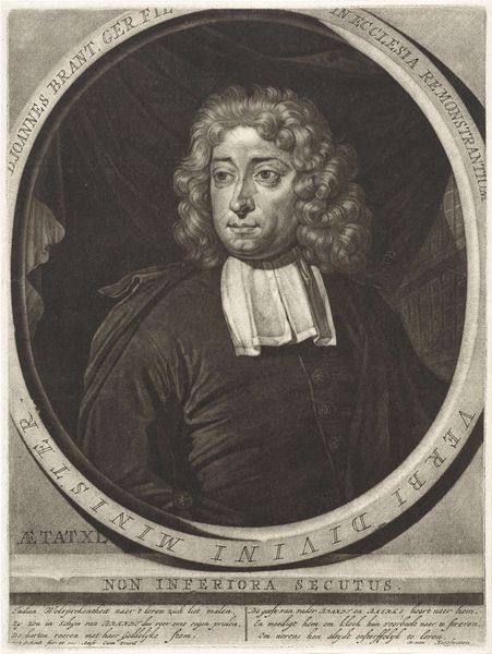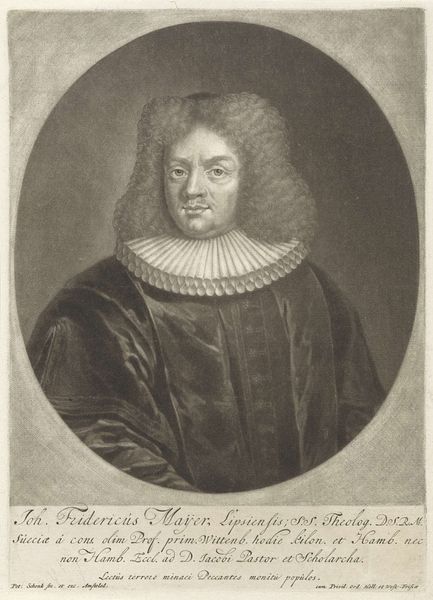 Pieter Schenk created this engraving, "Portret van Kaspar Neumann," capturing the likeness of Kaspar Neumann, a prominent theologian and scholar. The portrait reflects the social and intellectual circles of the late 17th and early 18th centuries. This image offers a glimpse into the representation of intellectual identity during this time. Neumann, with his formal attire, embodies the era's emphasis on status and scholarly achievement. The portrait's traditional style maintains the established norms for portraying figures of importance, yet it also hints at the individual's character through subtle details in his expression. Consider the emotional nuances conveyed in Neumann's gaze and posture. Does it project authority, contemplation, or perhaps a hint of the personal struggles of navigating religious and intellectual life during a time of significant change? This engraving invites us to reflect on the relationship between public image and private identity, and how societal expectations shape individual expression.