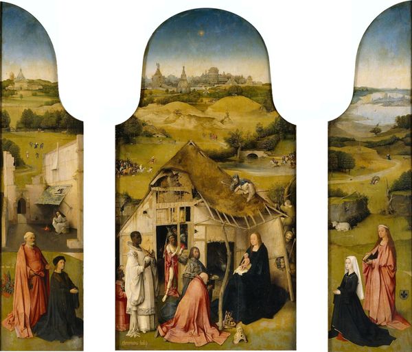 This is an anonymous oil on wood triptych, made for the Humbracht family of Frankfurt. The painting depicts the crucifixion of Christ, flanked by members of the Humbracht family on either wing. The inclusion of family members in such a religious scene was a common practice in 16th-century Europe, reflecting the close relationship between wealthy families and the Church. Such commissions were an opportunity for wealthy families to publicly display their piety and social status within their communities. The placement of family members alongside religious figures reinforces their importance and legitimacy within the social hierarchy. The Humbracht family would have been intimately involved in the design and construction of this piece, and it would have been displayed in the family chapel. It is a testament to the enduring power of art to negotiate social, political, and religious identities. Further research into the Humbracht family and the history of Frankfurt during the 16th century can shed light on the social and political context in which this artwork was created.