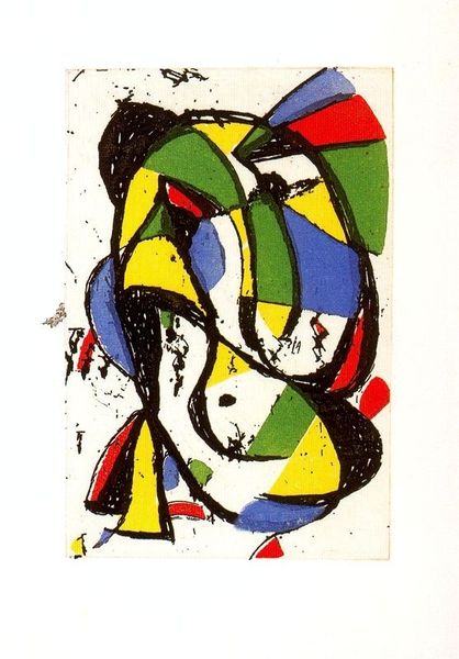 Joan Miró made ‘Carota’ and in it, he's letting shapes and colors play together like kids in a sandbox. There's a process to it, sure, but mostly it's about letting things happen. I’m drawn to the bold, black lines that define the form, but then look closer – it's a playground of color, right? Reds, yellows, blues, greens – all hanging out in the same space. There's texture in those splatters, like Miró was flicking the paint around, and it feels so spontaneous. And then those eyes. Those red, cartoonish eyes that follow you! It's funny because even though it's abstract, it feels so alive, like a face staring back at you from another dimension. I see echoes of artists like Paul Klee in Miró's work, that same kind of playful, childlike wonder. But Miró brings his own wild energy, making something that’s both simple and deeply strange.