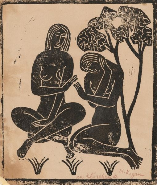 Editor: Here we have Otto Mueller’s "Badende" from 1911. It's rendered in pastel and colored pencil, and portrays figures in a landscape. It's immediately striking to me how the rough application of the materials contrasts with the serene subject matter. What do you see in this piece, from your perspective? Curator: For me, it's fascinating to consider how Mueller, embedded in the Expressionist movement, grapples with the artistic conventions around representing the female nude. These aren’t idealized figures of classical art. Instead, they’re rendered with this very particular pastel technique – a somewhat cheap, readily available material – emphasizing the body as something materially present and perhaps, readily available for the male gaze. What does it mean to produce "fine art" using materials historically relegated to sketching or "lesser" forms? Editor: So you are saying his choice of materials democratizes the subject and challenges the elitism of art production? Curator: Precisely! Think about who had access to oil paints versus pastels at the time. This connects with broader social movements questioning hierarchies of labor and value. Look closely: The texture reveals a specific kind of artistic labor, repetitive and almost rough. He's making "high art," but through a kind of industrial crafting logic. It questions the division between artisan and "fine" artist. Editor: I didn't initially see it that way, but I get it. He's commenting on not only the representation but also the commodification of art itself. Curator: Exactly. And even potentially of the human form. By foregrounding the material reality of its production, he lays bare the social forces always at play within even the most seemingly “natural” of art subjects. Editor: That's a fascinating point about bringing social and economic context into our understanding. Thanks, that has really changed how I view the piece!