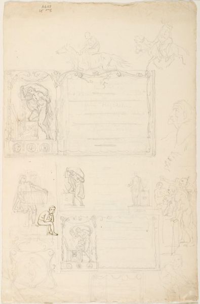 Lorenz Frølich created this sketch titled, 'Figurudkast i dekorativ indramning' in Denmark sometime between 1820 and 1908. The ornate framing and classical figures suggest a public artwork, perhaps intended for a building façade or interior decoration. Frølich was a celebrated illustrator and painter, deeply engaged with Norse mythology and historical themes. This sketch hints at the cultural aspirations of 19th-century Denmark, as it sought to define its national identity through art and historical narratives. The scene appears to portray a scene of judgement, perhaps a commentary on justice, or a scene from Nordic mythology. To understand this work fully, we would need to delve into Frølich's other works, the cultural politics of 19th-century Denmark, and the specific architectural context it was intended for. The role of the art historian is to reconstruct these layers of meaning, revealing the complex interplay between art, culture, and society.