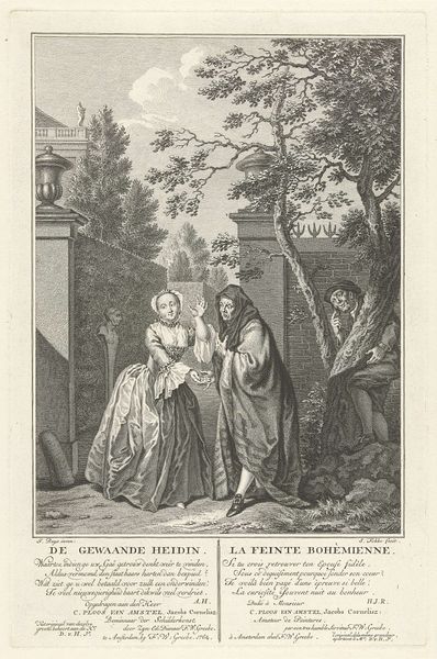 Claes Jansz. Visscher created this print of a woman and three men during the Dutch Golden Age, a period defined by its artistic innovation but also stark social stratification. The central woman is adorned with elaborate attire that speaks to status and wealth. Yet her downcast eyes and clasped hands suggest a narrative beyond mere display. The three men who encircle her seem to negotiate something, perhaps a marriage or some other transaction. What stories are suggested by the woman’s body language? How might her agency be limited by the social norms of the time? Visscher’s etching invites us to consider the complex dynamics of gender, class, and power at play in the 17th century. It also resonates with contemporary dialogues about women's roles, choices, and representations.
