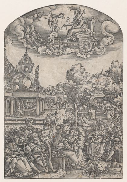 This anonymous print, titled "Venus and her Planet Children," presents a rich tapestry of symbols and iconography. Venus, the goddess of love, rides her chariot, accompanied by Cupid, her presence promising affection and desire. Yet, this chariot, adorned with the symbol of Taurus, suggests not just love but also fertility and the earth’s bounty. The Venus symbol, held aloft, further underscores her dominion over matters of the heart. Below, we see scenes of pleasure: music, dalliances, and bathing, all under Venus’s celestial influence. Consider, though, how the image of Venus, originally a symbol of pure beauty and love, here intertwines with earthly concerns. This Venus, associated with Taurus, reflects a shift towards material pleasures. Similar transformations can be traced across epochs, where goddesses of love adopt traits of fertility or warfare, mirroring societal values. The powerful allure of Venus lies in her capacity to engage our collective memory, evoking primal desires. The image is a potent reminder of how symbols continually evolve, their meanings shaped by the ever-changing currents of human experience.