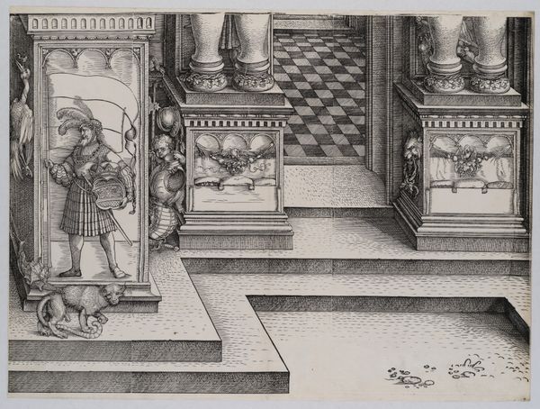 This print, ‘Portraits of Maximilian’s Relatives’ by Albrecht Altdorfer, dated 1515, was made using the traditional process of woodcut. The image is formed by carefully removing areas from a block of wood, leaving a raised design, which is then inked and pressed onto paper. You can see the effect of this process in the crisp, graphic quality of the lines, which create a dense, almost architectural depiction of the Emperor Maximilian's lineage and power. The texture of the wood itself subtly influences the final print, adding a tactile dimension to the heraldic imagery. Woodcut was a relatively accessible medium at the time, yet its labor-intensive nature speaks to the vast amount of work required to produce and disseminate such propaganda. This print is not just a work of art, but also a document of social and political ambition, intricately linked to the modes of production and consumption of its time.
