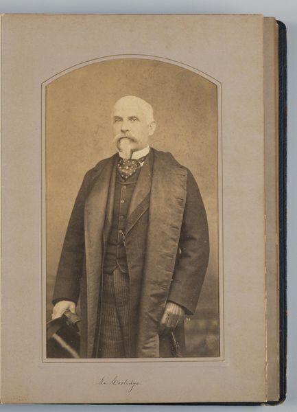 Editor: Here we see a photograph of James G. Blaine by Mathew Brady. It's presented in what looks like a cardboard frame, a rather humble presentation. What do you see in this portrait, considering its production? Curator: I'm drawn to the materiality of this object. Brady was a master of the wet-plate collodion process; this print speaks to the industrialization of portraiture. Consider the labor involved, from the mining of silver to the darkroom work. This wasn't just about capturing an image; it was about a system of production. Editor: So, the value isn't just in the likeness, but in the industrial processes behind it? Curator: Precisely. And the social implications of accessible portraiture! It democratized representation, yet was still controlled by figures like Brady who owned the means of production. It's a complex dance between art, labor, and capital. Editor: I hadn't thought about it that way. It's more than just a photo of a politician. Thanks!