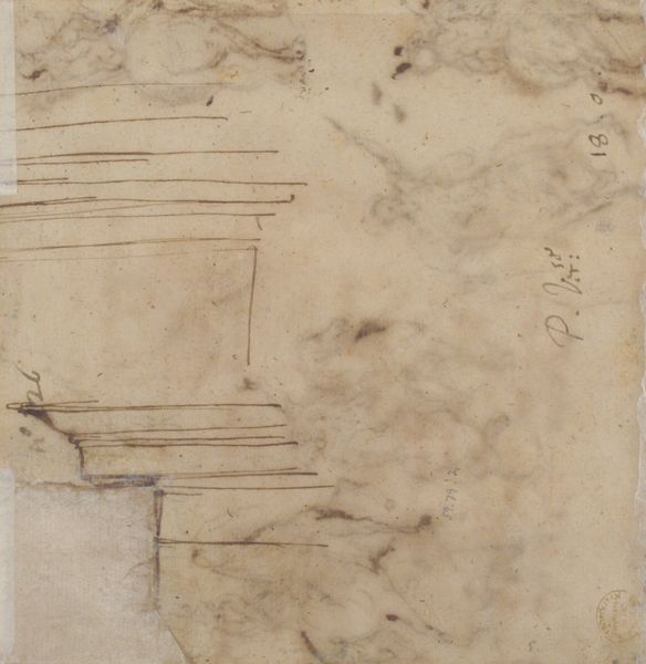 Curator: Here we have "Skitse til altertavle ? (Hvam kirke)" – a sketch for an altarpiece for Hvam Church – by Niels Larsen Stevns, thought to originate sometime between 1864 and 1941. It's a pencil drawing on paper. Editor: My first impression is of quietude, almost monastic in its simplicity. The composition is fundamentally geometric; rectangles within rectangles creating a contained, meditative space. Curator: Yes, notice how Stevns employs very economical lines. Semiotically, the landscape elements, however rudimentary, are doing a great deal of work here. What meanings can we derive from that spareness? Editor: I think the context is crucial. Stevns was clearly grappling with the commission – what did it mean to represent the sacred in a changing society? Was this a deliberate attempt to break from more ornate, traditional church art? It would be interesting to investigate its connection to the artistic currents within the Danish church at the time. Curator: The sparseness is deliberate; an aesthetic choice in line with contemporaneous movements rejecting academic artifice. The composition creates a rigorous framework of the image- a powerful abstract structure in which horizon lines float- it asks the viewer to invest themselves and their faith, more deeply, in the artwork itself. Editor: I'd wager that the intended audience and their expectations would have dramatically shaped his approach. Consider the local parishioners, their established views on religious art – how receptive would they have been to such an unconventional vision? Curator: These simple horizontals almost approach the sublime. Stevns invites contemplation not through lavish depiction but through structural suggestion and simplicity. Editor: Ultimately, it’s a reminder that the history of art is as much about societal dialogue and institutional influence as it is about individual creativity. The politics of representation and reception are crucial parts of this, even with sketches like these. Curator: Absolutely. Seeing the way in which an artist strips things back allows us to refocus and recalibrate our own understanding of the fundamental components of art and experience itself. Editor: Precisely. A look at the social dimensions gives the historical picture. Both approaches make art experiences better understood.