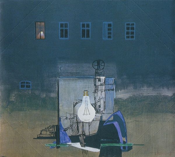 René Magritte painted "La Chambre de Madame Sundheim" with oil on canvas, and what strikes me is the way he builds a world with such flat, declarative marks. It's a painting about a painting – a theatrical space where the real and the artificial blend into a dream-like state. The colors are muted, like they've been borrowed from a faded photograph, yet there's an eerie glow emanating from within. Look at the way the pale pink light spills out from those window voids. The paint itself seems almost scrubbed onto the canvas, giving it a matte, slightly roughened surface. In the lower-left corner, there's an odd join between the floorboards and the wall. It makes the whole room teeter on the brink of collapse. Magritte's work always reminds me of de Chirico, another master of unsettling juxtapositions, but Magritte has a lighter, more playful touch. Both ask us to question what we see and embrace the delightful ambiguity of art.
