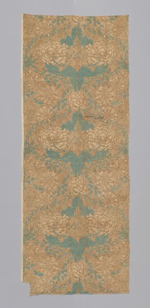 Editor: So, this textile panel, simply called "Panel", is from China, dating sometime between 1644 and 1911, made of silk. The overall feeling I get is elegance. The repeated patterns seem so delicate. What symbolic weight might these images have carried? Curator: Ah, yes. A beautiful example of applied art! The symbols woven into this panel speak volumes, resonating deeply within Chinese cultural memory. The flowers, for instance – do you notice which ones are most prominent? Editor: Peonies, I think. And are those magpies? Curator: Indeed. Peonies have long been associated with wealth and honor, especially during the Qing dynasty. The magpie, joy and happiness. How do you think these images, juxtaposed, would function psychologically for someone within that culture? Editor: Well, they would likely evoke feelings of aspiration, the hope for a life filled with both material comfort and emotional fulfillment. A potent combination. Does the pattern itself signify something? Curator: The very act of repetition lends weight. It’s a reinforcement of these desires, these values, woven into the fabric of daily life. Each viewing serves as a kind of affirmation. It could serve as a talisman. Editor: So, it’s not just a pretty decoration, it’s actively shaping perceptions. I hadn't thought about decorative arts operating in that way. Curator: Precisely. These aren't just decorations; they’re carefully constructed visual statements that play a role in cultural cohesion and even psychological well-being. These symbols have been used in other decorative artwork and cultural garments throughout history and in modernity as well. It's not a passing trend, rather, it is a lasting signifier. Editor: That gives me a completely new perspective on the power of these recurring symbols in the textile and how to evaluate other art that is similar. Thanks! Curator: My pleasure. It’s through understanding these visual languages that we can truly appreciate the depth of cultural expression.