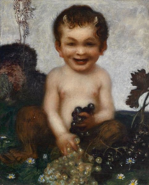 Editor: This is "Amor mit Wespe," or "Cupid and Wasp," by Gyula Benczúr, painted in 1920, using oil paints. It certainly captures a dramatic, albeit somewhat comical, moment! The raw emotion on the child’s face is really striking. What's your take on this piece? Curator: Well, given its time, think about what’s happening socially, the legacy of Romanticism, the turn of the century. What does a crying child, even allegorically depicted as Cupid, signify in that cultural context? What does it say about idealization of childhood, of beauty, and of pain being intertwined? Editor: That’s an interesting point. It almost feels like a commentary on the loss of innocence or the rude awakening from a romanticized view of life. Is there a reason Cupid, traditionally a symbol of love, is depicted in such a vulnerable way? Curator: Precisely. The traditional iconography of Cupid is upended here. Benczúr could be critiquing the overly sentimental portrayals common in earlier art historical periods, the rosy-cheeked, eternally cheerful cherubs. He reminds us that even love can be painful, right? Moreover, who benefits from the romanticisation of this subject? Who displays it? Who commissions it? These are very important factors to analyze, what do you think? Editor: That makes perfect sense. It challenges the viewer to reconsider those accepted portrayals of love. By showing a suffering Cupid, the artist might also be revealing the complexities and darker sides inherent in our idealized symbols. Curator: And don't forget the art market’s demands during this period. Works featuring cherubs sold well. It's possible Benczúr is playing into that demand, while also adding a layer of social commentary. It is both palatable for consumption while equally poking fun at the elites of society. Editor: I never considered the economic context. Viewing it with that lens really expands my understanding. Thanks! Curator: Exactly! Always ask, “Who benefits?”. That, and keep learning!