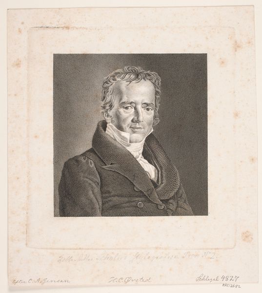Editor: This is Gustav Zumpe's "Portret van Ludwig Tieck," an engraving dating from sometime between 1840 and 1855. There’s something about the detail achieved through the engraving process that gives the portrait a really intense, almost academic, feeling. What do you see in this piece? Curator: I'm immediately drawn to the context of Romanticism in Germany at this time. Tieck, as a writer and critic, was a key figure in shaping the cultural landscape. This portrait, as a publicly distributed print, serves as more than just a likeness. It’s about creating a visual representation of intellectual authority and Romantic ideals for a wider audience. Editor: So, the print format makes it accessible, solidifying Tieck's image? Curator: Precisely. The act of reproducing and distributing Tieck’s image reinforces his role as a public intellectual, whose ideas circulated widely in society. What kind of socio-political implications do you think portraits had at this time? Editor: Well, it seems like possessing and circulating these images was a status symbol and contributed to shaping public perception of influential figures. Almost like a form of propaganda, to some extent? Curator: In a way, yes, though the concept of propaganda as we know it wasn't fully developed then. But you're right to see that portraiture, especially when reproduced like this, served a public function. The image becomes intertwined with the subject’s social standing. Consider how portraits in art history function as public monuments of the individual. Editor: It's fascinating how an image can carry so much historical and social weight! I’ll definitely view portraits differently now. Curator: I'm glad to offer a different perspective, thinking about how art actively shapes society.