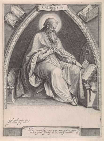 Roeland van Bolten made this engraving of Kerkvader Gregorius. Engraving is an indirect process. The artist begins by gouging lines into a metal plate, typically copper, using a tool called a burin. These lines are then filled with ink, and the plate is pressed against a sheet of paper, transferring the image. Look closely, and you’ll notice the lines are not uniform, but have tiny swellings and tapers. Skilled engravers modulated the pressure of their tool to achieve this effect, giving the finished print a subtle sense of depth and dynamism. Van Bolten also used hatching - closely spaced parallel lines - to build up areas of shadow. The density of these lines determines the darkness of the tone, a testament to the engraver's skill and eye. Engravings like this, were a way of disseminating images widely. This speaks to a time when the mass production of images began to transform culture and communication. The craft involved required technical skill and a deep understanding of materials. This piece is a reminder that even seemingly reproducible images are often rooted in intensive manual labor.