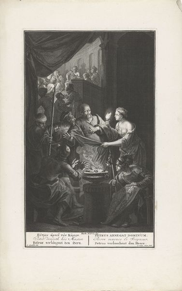 Curator: Here we have Abraham de Blois’ "The Entombment of Christ," an engraving made sometime between 1679 and 1728, now housed here at the Rijksmuseum. Editor: Immediately, the tonal contrast jumps out. The scene is so dramatically lit; almost theatrical. Curator: Precisely. Notice how de Blois uses stark contrasts and tight, controlled lines to direct our gaze? The focal point is, without a doubt, Christ's body, rendered with a luminous quality amidst the surrounding darkness. Consider the composition, its structured arrangement—almost geometric, if you consider the angles formed by the bodies and architecture—reflecting the Baroque ideals of order and reason. Editor: I’m drawn to the hands of those carrying Christ, though. So much careful labor and consideration must have gone into printing an image like this. You’re reproducing an idea of human pain and suffering by manually controlling every mark on the metal. What sort of workshop dynamic allows for such dedication to a mass produced image of something so intimate? Curator: An astute observation. We can’t overlook the role of workshops and apprentices in the making of these prints, the collaborative labor intrinsic to its production and the economics and social systems necessary to make it possible. But even within a potentially democratized print medium, do you note the formal rigor the figures’ draped garments present? The dynamic folds accentuate the drama while also echoing the curves of the cave and emphasizing the emotional depth inherent in the scene. Editor: All those tiny controlled lines give such a precise sense of texture and form—the weight of the stone, the coarse weave of the burial cloth. There’s also an economic component to these textiles, I’m sure. I’m mostly interested in what it means to see death reproduced by an industrialized print culture. Curator: I am compelled by the structured nature of this grief, framed so perfectly by De Blois. The emotionality of the scene, carefully calculated and impeccably rendered, remains ever captivating. Editor: It is astonishing to consider the skill and time required to realize an image of loss through such laborious reproduction. An intricate weaving of labor and lament.