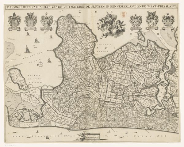 This is an anonymous map of Kennemerland and West-Friesland, two regions in the province of Noord-Holland, dating from an unknown year. This fascinating map offers a window into the economic and social landscape of the Dutch Republic. During the early modern period, the Netherlands was at the center of cartographic innovation. Maps like this were not only geographical tools but also instruments of power, used to define territory, facilitate trade, and project national identity. The detailed divisions of land reflect the Dutch Republic's sophisticated administrative and legal systems, which enabled efficient governance and economic activity. The elaborate decorations, with their depiction of local industries and heraldic symbols, tell us about regional pride and economic prosperity. To understand the map fully, historians consult archives, estate records, and other primary sources. Through such research, the map yields insights into the complex interplay of social, economic, and institutional forces that shaped the Dutch Golden Age.