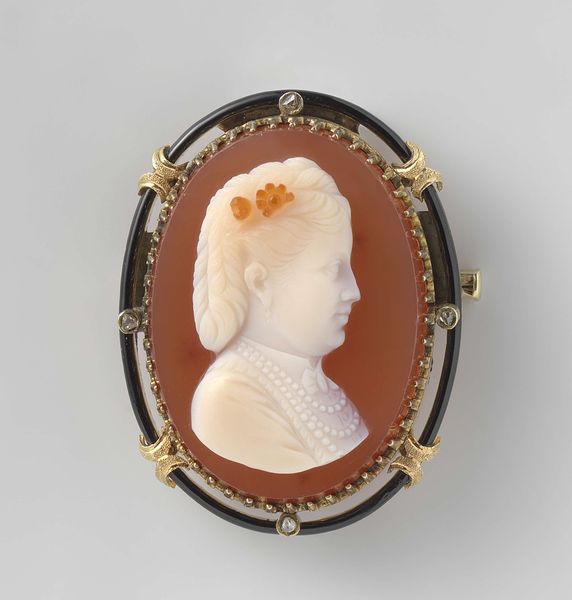 Curator: This watercolour miniature, dating to 1795, captures Marie-Thérèse-Charlotte, daughter of Louis XVI, through the eyes of Jacques Joseph de Gault. It resides here at The Met. Editor: Such delicacy in scale, yet that gaze feels monumental. I can't help but notice that it resembles a jewel – small but captivating, with the frame looking like precious metal. Curator: That's insightful. Consider how watercolor miniatures served as keepsakes during this period. This wasn’t just art; it was intimacy made portable, tokens amongst royals. The technique—precise layering on perhaps ivory or fine parchment—allowed for an astounding level of detail. The tiny scale intensifies our engagement. Editor: And elevates it from "craft" object to high art! How much did her position influence de Gault? I mean, who had access to such materials and skill then? Pigments derived from precious minerals were often ground by apprentices. The hair – an incredible feat! Curator: Undeniably, context shapes everything. To be royal was to inhabit privilege, to be painted a marker of status. Still, de Gault brings something… human. Those slightly downturned eyes, the delicate rendering of skin... There’s vulnerability amidst the formality. I imagine he labored long hours, a meticulous devotion reflected in the glowing details. Editor: Exactly. It’s labour memorialized. Also I can't stop wondering who made the materials: grinding the pigments, hammering the gold around the rim, the production of a thing itself as an event worthy of study. Curator: Ultimately, this tiny portrait encapsulates immense contradictions – artistry and craftsmanship, royal privilege and individual vulnerability. Editor: Right, history itself contained within a droplet. The political turbulence of the late 18th century echoes silently around the frame – luxury produced right at the brink of revolution.