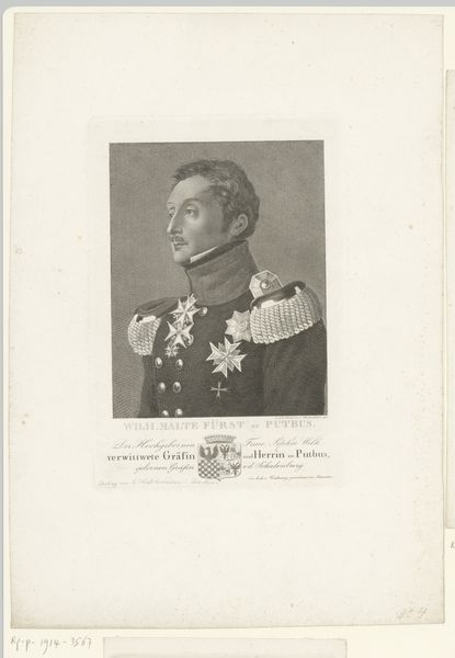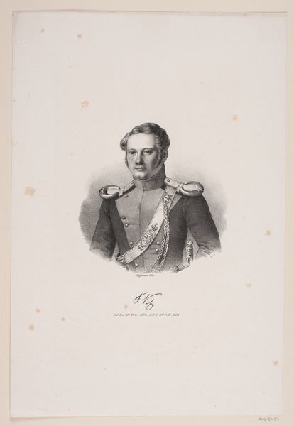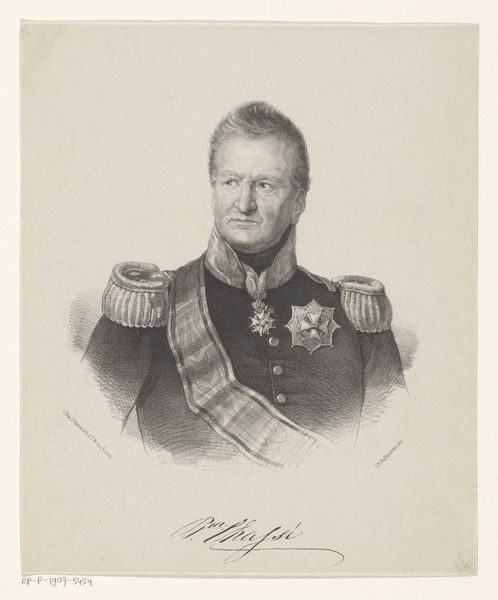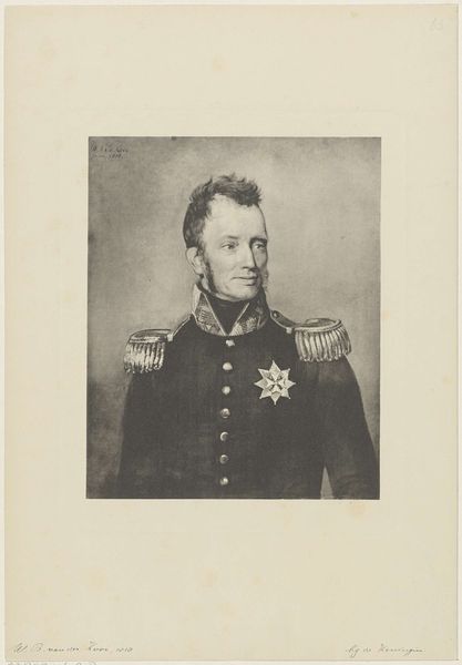 Curator: A stern but elegant gentleman rendered with a soft touch. Editor: That would be the “Portret van Johannes van den Bosch,” a print of a pencil drawing completed by Johan Hendrik Hoffmeister sometime between 1851 and 1883. The precise dating remains, shall we say, in debate. Curator: There is a directness in his gaze, a quality of unwavering leadership. The choice to portray him in full military regalia is striking. Do you read this as an idealized representation, or something more grounded? Editor: I think it reflects how he saw himself, and how he wanted to be seen by posterity. Van den Bosch was a key figure in Dutch colonial administration, so that uniform carries a heavy symbolic weight of power and authority. Neoclassical art always had close ties with state authority in Europe. Curator: Absolutely. The precision in the rendering of his awards – each star and ribbon carries layers of significance about service, honor, and allegiance. These symbols acted as visual cues, immediately communicating the status and virtues expected of leaders in that period. The visual language certainly aligns with that of a man who made a significant impact. Editor: He’s presented as a figurehead in this era of intense colonial activity, isn't he? I mean, art often becomes an instrument, solidifying the images of powerful figures like him for generations to come. What do you make of his serious expression in a society keen to produce serious role models? Curator: Yes, it feels purposeful, a communication that emphasizes dedication to duty. We are witnessing how portraiture functions as a kind of cultural script. It teaches us who to admire and what values to emulate. A carefully built edifice of symbolism all of its own! Editor: And that’s part of the continuing resonance and tension within it. Considering the era, seeing how images of men like Van den Bosch circulate becomes critical to any dialogue concerning representation. Curator: An astute observation. Understanding how symbols operate and the roles they perpetuate is always something that needs further and constant consideration. Editor: Indeed. Food for thought, as always, with the stories of images rippling into our world.
