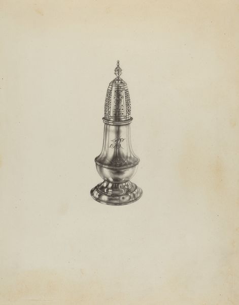 Hester Duany made this drawing of a Silver Caster, we don't know exactly when, with graphite on paper. It looks like it could be a photograph, doesn’t it? Almost like one of those hyper-realist paintings from the '70s! But look closer, and you can see all the tiny adjustments, the slight wobbles in the perspective. It's a careful study in tonal gradations and shading, with these lovely pencil marks, building up the form. It’s interesting, isn’t it, how the artist has chosen to focus on a functional object? The caster is so delicately rendered, so precise and clean, it makes you wonder what Duany might have made of someone like Giorgio Morandi, who was also obsessed with rendering household objects, but in a much more painterly way. Maybe she would have thought it was a mess! Who knows?