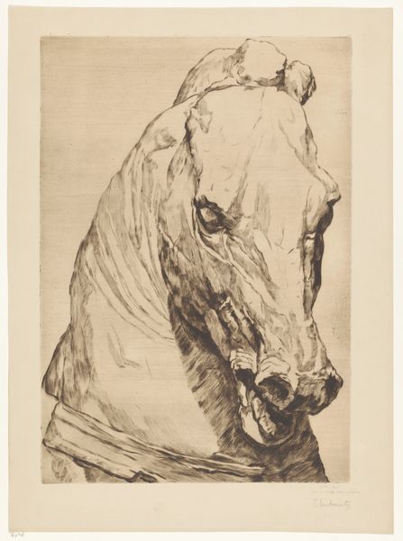 Editor: This is "Hond Cees" by Dick Ket, made possibly between 1925 and 1928 using pen and ink. I’m really struck by the dog’s expression; it’s panting and looks almost playful, but the stark lines of the ink give it a kind of…intensity. What do you see in this piece? Curator: I see more than just a dog, I see a reflection of humanity. Consider the enduring symbolism of the dog throughout art history – loyalty, guidance, but also wildness, the untamed. Look at how Ket renders the fur, almost like tangled thoughts or raw emotions trying to burst forth. Doesn't the dog's slightly crazed but joyful gaze seem to echo anxieties felt by individuals in that interwar period? Editor: I hadn't thought of it that way, I was focused on the dog itself, and its, I guess, slightly unsettling stare. But the idea of the fur representing tangled thoughts... I can see that! So, is the dog representing societal unease? Curator: Perhaps societal unease filtered through the lens of personal experience. Ket was known for his very personal, often psychologically charged self-portraits. Is it possible this canine portrait mirrors something of his own internal landscape? What symbols resonate most strongly for you? The open mouth, the intense gaze - where do they lead your thoughts? Editor: The open mouth, maybe hunger or just unfiltered expression. And the eyes…they definitely hint at something hidden, a deeper story behind that panting. It is not simply a pet; there are complex ideas behind it! Curator: Precisely! It’s a reminder that even seemingly straightforward images can hold layers of cultural and personal meaning, if we allow ourselves to dig a little deeper. Each stroke of ink tells a tale beyond the immediately visible. Editor: I will remember that – looking beyond the surface. Thanks, that really broadened my perspective!