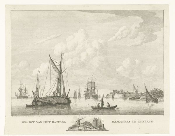 Carel Frederik Bendorp made this print of the port of Dordrecht sometime in the late 18th century. It is an etching, made by incising lines on a metal plate and using acid to deepen them before printing. The scene shows the laborious process of dismantling a timber raft, which had been floated downriver from forested areas. Look closely, and you can see men using long poles to maneuver the logs, separating them for further transport or use. It's a striking illustration of the scale of the timber industry at this time. The logs weren’t just commodities, they were a lifeline for shipbuilding, construction and fuel. The print makes it clear that the process involved an immense amount of manual labor. The figures are small but essential, and their collective effort is what brings the scene to life. Prints like this one invite us to think about the relationship between commerce, labor, and the environment – all elements interwoven in the making and unmaking of this floating architecture.