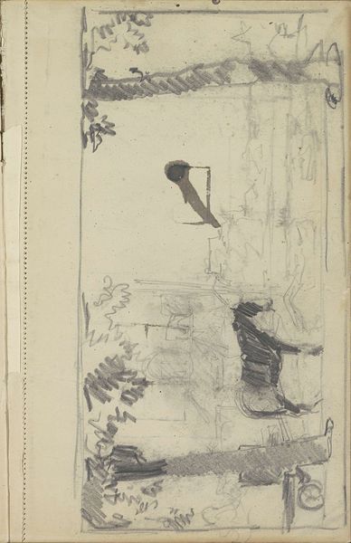 Willem Witsen created this drawing, "Boer met een zeis op het land", at an unknown date using graphite. The drawing's composition strikes a compelling balance between detail and suggestion, immediately engaging us with its textural richness. Witsen masterfully employs graphite to render the figure of a farmer with a scythe. The density of marks varies across the surface, creating a dynamic interplay of light and shadow. Notice how the upper portion of the drawing features looser, more gestural lines that convey the atmospheric quality of the landscape, while the farmer is rendered with more deliberate strokes. The artist's structural approach, emphasizing line and form, transforms the mundane scene into an exploration of spatial and visual relationships. Through the strategic use of line, Witsen destabilizes fixed meanings, prompting us to engage with the artwork's representation of labor and rural life. It remains a site of ongoing interpretation.