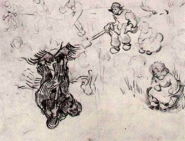 Editor: Here we have Othon Friesz’s 1907 drawing, "To studier af den brændebærende mand, spejlvendt," rendered in stark black lines. It has an energetic, almost frantic feel to it, and the figures are caught mid-motion. How do you interpret this work? Curator: I see archetypes here. The wood-bearing man, burdened yet striding, is a symbol deeply embedded in our collective memory. Wood carries connotations of hearth, home, but also labor and sustenance. The “spejlvendt,” or mirrored aspect, doubles down. Where does it take us? Is this then the figure mirrored in social expectations and inner experiences? The wood then turns into an object of memory, both supporting and suppressing us. Editor: So you see it representing a tension between burden and necessity? Curator: Precisely. Consider the expressive lines. Are they chaotic, or carefully considered? Do you see hints of cubist fragmentation, a breakdown of form mirroring the fragmented self, under duress of modern life? Editor: That’s interesting! The looseness makes it feel very modern, but the theme is timeless. Curator: Yes! The combination creates a dialogue across time, reflecting humanity’s ongoing negotiation with nature, labor, and self-perception. Does it reveal something of the man’s dignity or alienation from himself through hard work? Editor: I hadn’t thought about alienation. Now I see the mirrored figures differently, almost as internal struggles externalized. Curator: Visual symbols evolve, but often retain echoes of their past. Recognizing those echoes enriches our understanding of both the art and ourselves. Editor: I will definitely be paying more attention to those echoes. Thank you!
