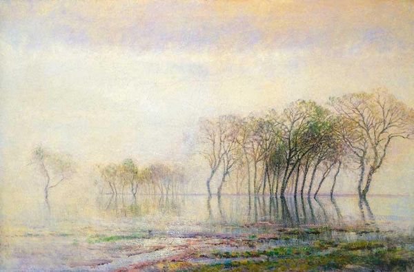 Robert Julian Onderdonk painted this oil on canvas titled "Morning on the Pond" during an era of significant social and economic change in the United States. Onderdonk's artistic style reflects the influence of Impressionism. Note how the muted palette and soft brushstrokes give the scene a sense of tranquility. The cultural associations of this work are tied to a broader interest in capturing the essence of the American landscape. During this time, art institutions played an important role in shaping national identity. The choice of subject matter in this piece may reflect a nostalgic longing for simpler times, away from rapid industrialization and urbanization. Art historians use a range of primary and secondary sources to understand such works; period publications and exhibition reviews can shed light on the artist's intentions and contemporary responses. Ultimately, the meaning of a painting like "Morning on the Pond" is shaped by its historical context.