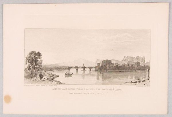Editor: This is James Fittler's "Warwick Castle," rendered in etching. It feels very idyllic, almost like a stage set. What symbols jump out at you in this image? Curator: Note the placid cattle reflected in the water. Even the castle, a symbol of power and defense, is softened by the picturesque framing. Does this domestication of power resonate with the viewers, perhaps reflecting changing social attitudes? Editor: That's a great point. It's a powerful structure, but the soft rendering makes it seem more inviting than imposing. Curator: Yes, the image seems to be about taming and absorbing the symbols of power into the landscape. What do you make of that lone figure walking on the bank? Editor: Maybe they represent the everyday citizen, finding peace in the shadow of what was once only for nobles? Curator: Precisely! Visual symbols can evolve in our collective consciousness over centuries.