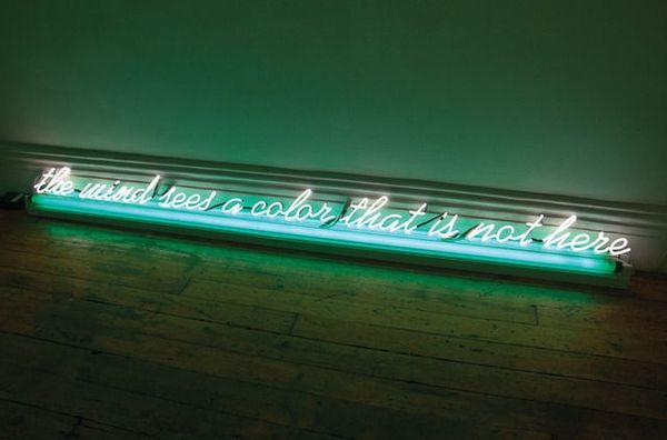 Editor: So, here we have Bruce Nauman’s “The True Artist Helps the World by Revealing Mystic Truths (Window or Wall Sign)” from 1967, created using neon tubing. I’m struck by how such a bold medium conveys such a…circular and, well, rather grand statement. How do you interpret this work in the context of its time? Curator: That circular form is key. Nauman made this piece at a time of huge shifts in the art world. Traditional art forms were being questioned and artists began exploring new materials and ways to engage with their audience. How might that form be working against expectations of the time? Editor: It does seem almost commercial, like a shop sign. But the message is far from a simple sales pitch! It's thought-provoking, a bit cheeky even. Curator: Exactly! Nauman's use of neon, a common material for advertising, challenges the preciousness often associated with fine art. Think about the social and political climate of the late 60s. There's this tension between consumer culture and a growing counterculture seeking deeper meaning. The phrase "The True Artist Helps the World…" sounds like a noble sentiment, but is it? Does he really mean that? Editor: I guess it's open to interpretation. Maybe he’s questioning the role of the artist in a world saturated with images and information. It's like he's holding up a mirror to the art world itself. Curator: And considering museums and galleries as these spaces that control the narrative around art... Well, isn't that sign also performative in how the light shifts focus at different angles? That constant play calls attention to how we give meanings to objects in cultural settings. How do power dynamics control what we consider ‘art’? Editor: That’s really interesting! I hadn't thought about the performative aspect. It makes me see it less as a statement and more as a provocation. Thanks! Curator: Precisely. It is a really complex interplay between the message, the medium, and the socio-political climate that informs our understanding and interpretation of art itself. It changes my perspective, too.