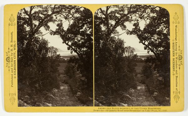 This stereocard, titled ‘Untitled (Lydford)’, shows a photographic process developed in the 19th century. It consists of two nearly identical photographs mounted side-by-side on card stock. When viewed through a stereoscope, the two images merge to create a single three-dimensional picture. The effect is achieved by mimicking the way our eyes perceive depth. The photographer takes two pictures of the same scene from slightly different angles, much like our eyes do. The stereocard was a popular form of entertainment and education in the Victorian era. It allowed people to experience places and events from around the world, without leaving their homes. The production of these cards was an early instance of mass media and visual culture, relying on standardized materials and labor to create accessible imagery. Think of it: early photography democratized the experience of art, placing it within reach of a growing middle class.