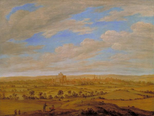 Editor: So, this is Philip Wilson Steer's "Richmond Castle," its date is unknown. It's oil on canvas, currently residing at the Tate. The stormy sky really dominates the scene. What can you tell me about it? Curator: The thick impasto application of paint is fascinating. Considering Steer's materials – the pigments, oils, and supports available at the time – how do they influence our perception of the castle as a symbol of power or ruin? What kind of labor went into making this painting? Editor: That's interesting, I hadn't thought about the specific paints used. Are you suggesting that the materiality of the paint itself contributes to the feeling of decay? Curator: Precisely. The very substance becomes part of the story. Editor: I see, it’s more than just depicting a castle; the materials and their application are actively shaping our understanding of it. Curator: Exactly!
