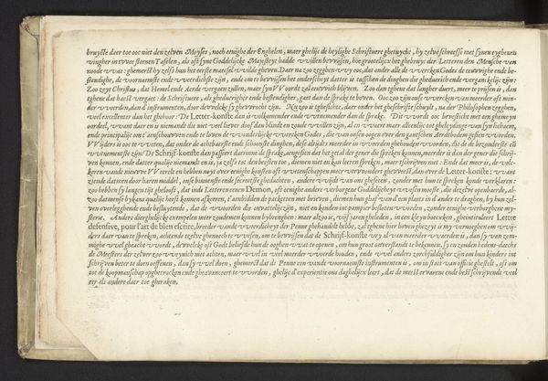 This page, crafted in 1617 by David Roelands, presents a dedication to the magistrates of Vlissingen. The visual impact of the text stems from its arrangement on the page. The dense, uniform lines of elegant script, form a structured block, creating a sense of formality and order. The dark ink on the aged paper provides a stark contrast, emphasizing the texture and materiality of the page itself. This interplay between script and surface invites a close inspection of the words. The dedication, beyond its literal meaning, functions as a carefully constructed semiotic system. The formal language and respectful tone operate as cultural codes, reflecting the social hierarchies of the time. Furthermore, the emphasis on virtue, freedom, and divine glory is a subtle engagement with contemporary philosophical concerns around governance and morality. The structured layout and deliberate choice of words reflect an attempt to stabilize meaning within a complex social and political landscape. Ultimately, the text operates not merely as a statement, but as an artifact embedding the values and aspirations of its creator within the formal constraints of its medium.