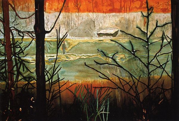 Egon Schiele made this River Landscape with oil on canvas, and what strikes me is how he's carving out this space with color and line. It's not just about depicting a scene but really getting into the dirt of it, you know? There's this one part, near the bottom left, where the paint is almost scrubbed on, creating this raw, textured patch. It’s like he’s digging into the canvas itself, revealing something hidden beneath the surface. The browns and ochres dominate, but then you see these little flecks of red. They pop, like tiny sparks of energy. Schiele's landscapes often feel like portraits, and you can see a connection to someone like Edvard Munch, who also used landscapes to express inner states. Neither are trying to give us a literal view, they're more interested in the feeling of being in a place, in a body, in a world that’s always shifting. Art’s a conversation, not a lecture.