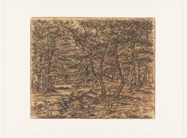 Editor: This is "Veld met hoog onkruid," or "Field with Tall Weeds," an etching by Kees Stoop, created between 1974 and 1975. The textures are so dense! How do you see this work? Curator: Immediately, I consider the labour embedded within this print. Etching is a meticulous process, involving the careful application of acid to a metal plate. We must ask, what kind of labour is Stoop choosing to represent? The answer here would be uncultivated nature, "weeds." Editor: Weeds, huh? I would never think to describe it that way. I saw it as a peaceful nature scene, almost idealized. Curator: Perhaps. But the choice of the etching medium, combined with the subject matter – these "weeds," plants that resist cultivation – suggests something more. This wasn't mass produced, yet depicts wild nature. Think about the societal context of 1970s Netherlands. What anxieties or interests might this subject and medium reflect? Editor: Maybe a commentary on industrialization, a yearning for something less processed, more… raw? Was printmaking considered low art then, compared to painting? Curator: Exactly! Stoop’s selection elevates the commonplace to fine art, using laborious techniques. But did he? What level of art did you come to consider this during your time analyzing the artwork? And is it high or low art? Does it challenge this boundary? Editor: It definitely makes me rethink what I value in art. I came in thinking "landscape," but now I'm considering the artist's choices, the materials, and what it all *means* in a broader context. Thank you. Curator: And I’m reminded to question what is seen as disposable versus valuable.