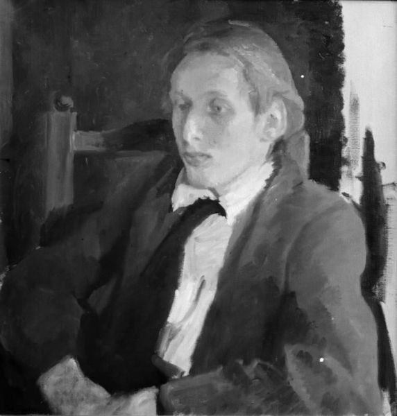 Here we have Boris Kustodiev's 'Portrait of Isaak Izrailevich Brodsky'. I love the tonal approach; it's rendered in soft, modulated grays, and it makes you think about the process of painting itself. The paint application seems smooth, almost like Kustodiev was trying to make the surface disappear. There's this quietness in the way the light catches Brodsky’s face, making him look thoughtful, maybe even a little melancholy. Look closely at the way the suit is rendered, with subtle variations in tone that create a sense of texture. It's like Kustodiev is saying, "Here’s a person, but also, here’s the act of seeing and representing." It reminds me a bit of Whistler's portraits, where the mood and atmosphere are just as important as the subject. Art is like a conversation across time, full of echoes and reinterpretations. It’s never about one definitive answer, but about staying curious and open to new ways of seeing.