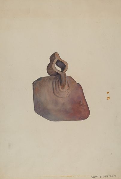 Curator: We’re looking at “Iron,” a drawing created around 1938 by John Thorsen, primarily using watercolor. Editor: It has a certain forlorn quality, don’t you think? Somber, a bit…weighted. Is that the iron speaking, or my own assumptions kicking in? Curator: The subdued palette and close framing certainly contribute. Note the expert use of light and shadow to give the object volume and depth. The handle, especially, has such a tactile presence. It almost seems like a study in the formal properties of line and form. Editor: Absolutely, but consider the historical context. It was created during the Depression era. An iron wasn’t just an object then, it represented domestic labor, primarily done by women. The weightiness you mentioned? It's literal, yes, but also a symbol of that relentless, often invisible work. Curator: That’s an interesting layer to consider. Looking solely at the drawing, I’m struck by the way the artist balances meticulous detail with an overall atmospheric quality. The textures rendered in watercolor... it is compelling formal interplay. Editor: But that detailed rendering makes the iron even more concrete. It's not just form; it's the specific object. One that would have been heated on a stove, used to press fabric to clothe families struggling during that difficult period. There's a quiet dignity, or even a melancholic truth, about that labor reflected in the iron's sturdy presence. Curator: It is undeniable. This is one utilitarian object elevated through the artist’s sensitive rendering, into something profound, an echo of that historical moment. Editor: Yes. Perhaps by portraying the essence of work and struggle, it captures a part of the past that resonates into the present.