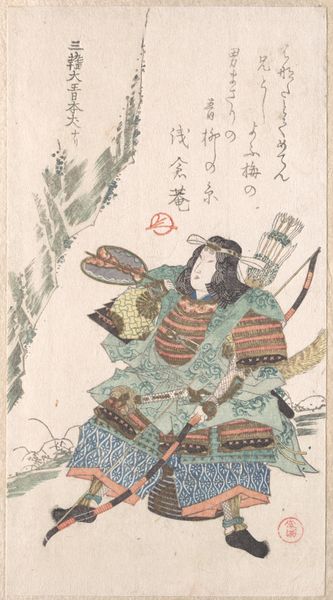 Utagawa Toyokuni I rendered this woodblock print titled, 'Ushiwaka-maru in Armor'. Here, we see Ushiwaka-maru, later known as Minamoto no Yoshitsune, a historical figure celebrated in Japanese folklore. The armor he wears is not merely protective gear; it is a visual declaration of his identity. The image of the warrior, clad in armor, has resonated across cultures and epochs. The armor is reminiscent of the classical Greek bronze cuirass, symbolizing strength and martial prowess, an archetype found from ancient Persia to medieval Europe. Consider the psychological weight of such imagery. The archetype taps into our collective unconscious, resonating with primal notions of power, protection, and readiness for conflict. This martial display is not merely a costume but a symbolic representation of inner strength and the readiness to face life's battles. Like the cyclical nature of history itself, symbols like the armored warrior reappear, evolve, and are reinterpreted across different eras.