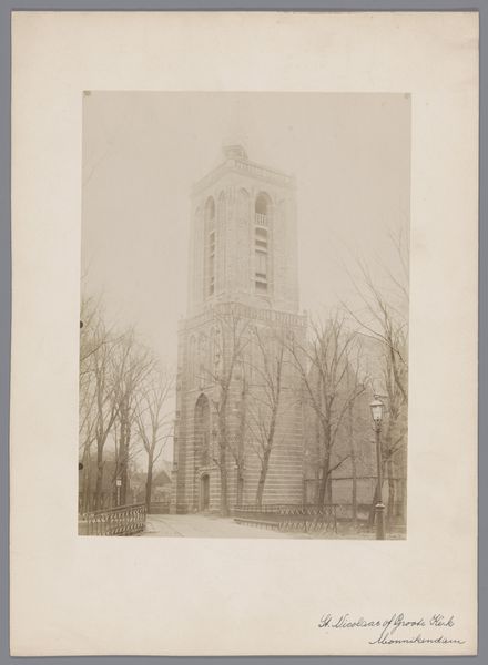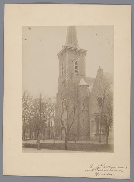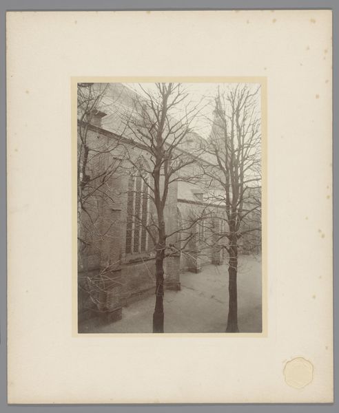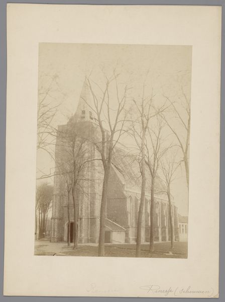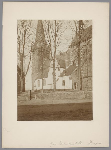 This sepia photograph shows the Sint-Gertrudiskerk in Maarheeze, and was made by an anonymous photographer from Monumentenzorg. It's got this muted, almost ghostly palette. It reminds me how photographs can really freeze a moment, make it kind of timeless, even if the moment itself was totally ordinary. I like how the church kind of looms in the background, but the stark, bare trees are right up front. Those branches reach out like fingers, and it's interesting how they both reveal and conceal the church. They remind me of Cy Twombly’s line work, where every mark feels like a search, a feeling. You get the sense that the photographer isn't trying to give us a crystal-clear picture, but maybe to capture a mood, a feeling of place. It's all about what the camera chooses to focus on, and how that shapes what we see. Thinking about influences, I wonder if this photographer knew the work of Eugène Atget, capturing the streets of Paris. Both seem interested in the poetry of everyday life. Ultimately, art's just a conversation, right?