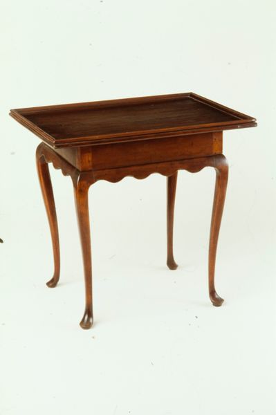 This card table, made by an anonymous maker, is a beautiful example of woodworking. Notice the range of different woods used in the table’s construction. The legs are a dark, straight-grained timber, perhaps mahogany, fluted to create a pleasing visual rhythm. The apron is inlaid with a lighter, burled wood and accented with dark banding. The process of making this table involved a high degree of skill. A cabinetmaker would have used saws, chisels, and planes to shape the wood, and a veneer saw to create thin sheets for the inlays. Details like the fluted legs would require a specialized tool. The surface would have been carefully polished to bring out the natural beauty of the wood. The value of this table lies not only in its functional design, but also in the artistry and labor that went into its creation. Appreciating the materials and making process invites us to see beyond the traditional categories of design, craft, and fine art.