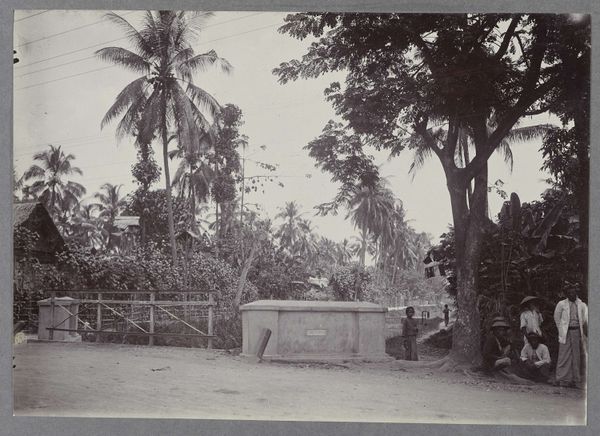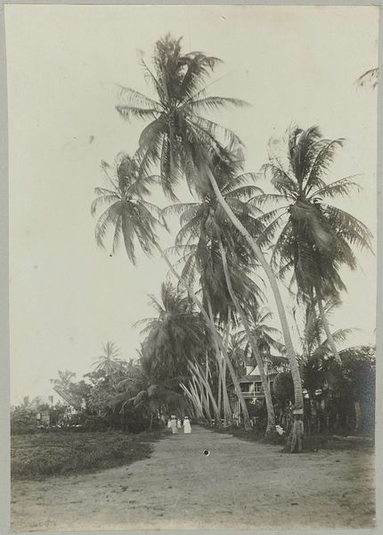This photograph, Strand bij Mount Lavinia, was made by A.W.A. Plâté & Co. It's interesting how the dark, heavy strokes of the palm trees contrast with the ethereal villa in the background, almost like a dream. The way the light reflects off the wet sand makes you feel the heat of the sun and the cool of the water. The single child in the water is a key mark, drawing you into the scene, inviting you to imagine their story, their day. There's a rawness to the image, a sense of immediacy, as if the photographer were right there, capturing a fleeting moment in time. It's not unlike a painting by Edward Hopper. He has the same way of isolating figures in landscapes. This photograph embraces that same kind of open-endedness. It's not about answers. It's about possibilities.