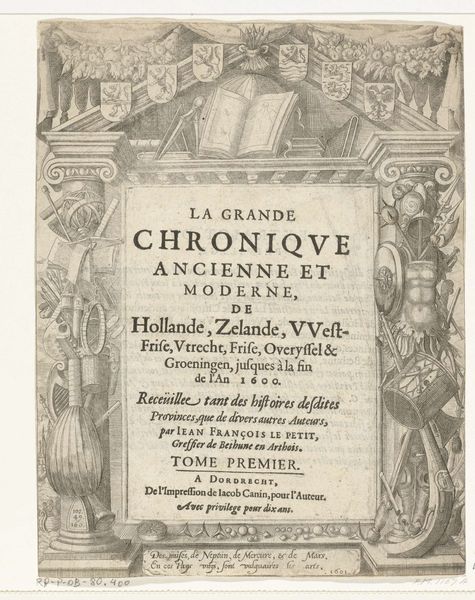 Editor: This is “Title-border: Tantalus; small initial E” by Hans Holbein the Younger. I find the figures framing the text really intriguing; it feels like they are part of the story of the title itself. What do you see in this piece? Curator: Holbein masterfully weaves classical mythology into this title border. Look closely at the figure of Tantalus on the left, forever tormented by unattainable desires. He embodies the frustration of knowledge just out of reach, perhaps reflecting the challenges of grappling with ancient Greek texts. Editor: So, the imagery isn't just decorative but actually speaks to the content of the book? Curator: Precisely. Holbein uses these symbols to layer meaning. Consider also the scenes from classical mythology that frame the title. They enrich our understanding of how Renaissance scholars viewed and interpreted classical texts. Editor: That's fascinating. I'll definitely look at title pages with a new perspective now!