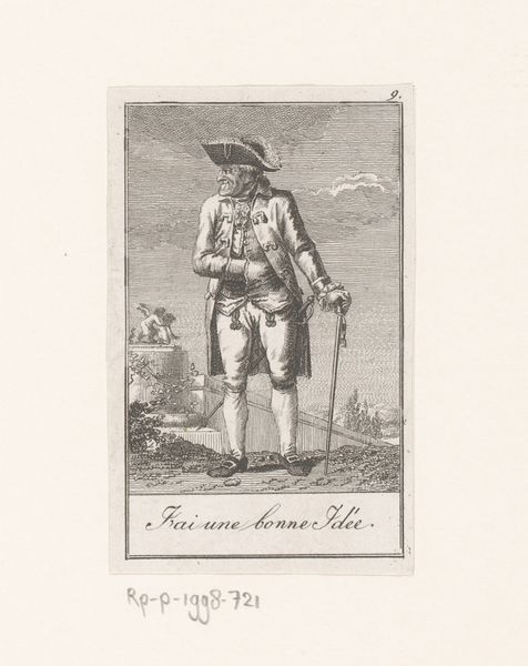 This etching, by Karl Heinrich Grünler, depicts a man in a garden, his gesture of pointing finger taking center stage. The index finger, extended as it is here, has long served as a signifier, a tool for directing attention. Consider John the Baptist, often portrayed pointing towards heaven, signaling the divine path. This simple gesture, deeply embedded in our collective memory, has the power to command, to accuse, and to guide. The figure stands amidst the trappings of an orderly garden, but his action disrupts this tranquility. What has he found? What is he drawing our attention towards? The garden cherub? Or perhaps, something beyond the frame? There is a theatrical quality to his pose, laden with implication, evoking a sense of wonder and anticipation. The pointing finger, therefore, is not merely a direction, but a provocation, urging us to seek, to question, and to unravel the enigmas of existence.