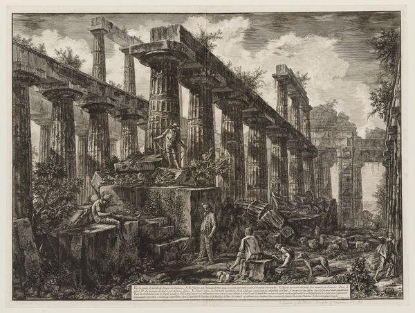 This print, “View of the remains of the cella of the Temple of Neptune,” was made by Giovanni Battista Piranesi in the 18th century, using etching and engraving. These are intaglio processes, meaning that the image is incised into a metal plate, which then receives ink. The extraordinary detail visible here is a testament to the artist’s skill. Look closely, and you can see how Piranesi has carefully modulated the lines to create a sense of depth and atmosphere. The architecture of the temple is rendered with precision, yet the overall effect is romantic and evocative. Piranesi was not only an artist, but also an antiquarian, keenly interested in the material culture of the past. The amount of work involved in the production process, especially in such a large print, speaks to the growing market for historical imagery at this time. Piranesi was meeting a demand, creating an object of beauty that also served as a record of ancient grandeur. This print exemplifies how art and craft, design and industry are all interconnected.
