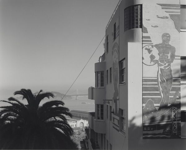 Curator: Here we have Thomas Barrow’s "Tucson Palm," part of his "Cancellations" series, taken sometime between 1974 and 1978. What's your first reaction to it? Editor: Initially, I see disruption, a stark division imposed upon what would otherwise be a rather mundane, even nostalgic, urban landscape scene. It’s almost aggressive. Curator: The "cancellations" are precisely that, aren't they? Barrow intentionally scratches across the negative, obscuring and reinterpreting the scene. It reminds me of Cy Twombly's scribbles, but with a photographic edge, of course. The underlying photo, absent the scratch marks, feels like quintessential 70s American West, a little sleepy, a little…forgotten. Editor: And that's the tension, isn't it? This juxtaposition of decay and development that the Arizona landscape embodies and that he then layers. On one side, you have a lone palm tree and an older building—institutional maybe? Across from it, rampant construction. Alluding to themes of gentrification, perhaps the erasure of established communities. The scratch marks underscore this very point. Curator: That push and pull really comes through for me, a dialogue between old and new, organic and inorganic, presence and absence. It’s like Barrow is saying, "Look closer. Nothing is as simple as it seems." Editor: Absolutely. It’s also worth considering the era it was made in, the mid to late 70s, with a cultural focus on deconstruction. The gesture disrupts our consumption of the image and questions notions of photographic truth. It also makes me think about visibility, power, and the act of looking. What does it mean to deface or ‘cancel’ an image of a city’s landscape? Curator: A deliberate visual interruption! What a perfect turn of phrase. For me, it makes you consider how much of our perception is shaped by these same interruptions—advertising, news cycles, fleeting trends. Editor: It makes one think that perhaps “Cancellations” can reveal deeper truths about both the nature of photography and what we take for granted in a society rushing forward. Curator: Indeed, a simple image reframed can open such a vista of ideas about urbanism and societal tension. I think I will never view it the same way again. Editor: Likewise! I appreciate that the artist's interventions grant such resonance to the landscape around us, however banal or beautiful it seems.