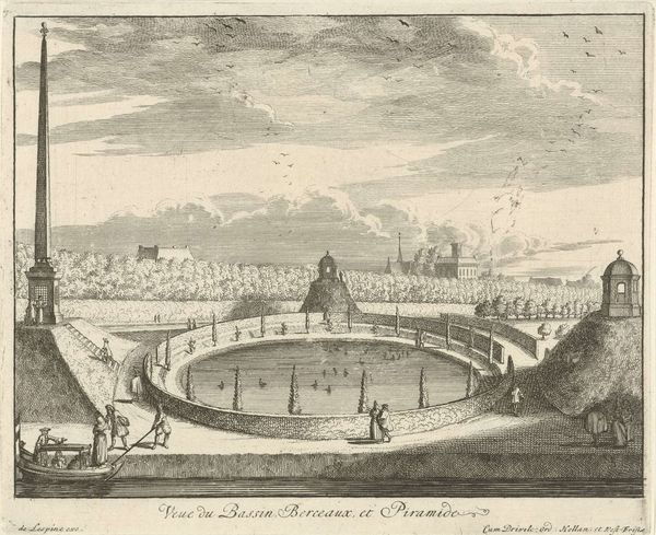 This etching of the Amphitheatrum Castrense in Rome presents a landscape of ruins, rendered with meticulous detail by an anonymous artist. The composition is dominated by the amphitheater's decaying structure, its skeletal remains forming a stark contrast with the surrounding hills and distant aqueducts. The linear precision in the etching highlights the formal geometry of the architecture, even in its ruined state. This focus on structure echoes a broader interest in the classical past, a period seen as a foundation for artistic and intellectual pursuits. The amphitheater is not merely a historical relic but a signifier of lost grandeur. The image reflects a semiotic interplay between absence and presence, where the ruins stand as a testament to both the passage of time and the enduring power of architectural form. The etching engages with philosophical ideas about history, memory, and the cyclical nature of civilization.