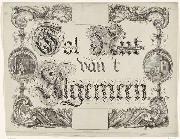 This is a Calligraphy on the Peace Between the States and Prince William V, made in 1787 by Leonard Jozef Ferrier. It's an etching, a printmaking process that relies on corrosive materials to create an image on a metal plate, which is then inked and pressed onto paper. Look closely, and you'll notice the intricate details of the lettering and border, which would have required meticulous work to create. The black and white aesthetic emphasizes the sharp contrasts and linear qualities of the design. Etchings like this one were often produced in multiples, making art more accessible to a wider audience, but it involved collaboration between the original artist and the skilled printmakers who translated the drawing into the etched version. The social context of its creation lies in the political climate of the time, celebrating a moment of peace between conflicting parties. By recognizing the interplay of material, process, and historical context, we can deepen our understanding of art that transcends traditional boundaries.