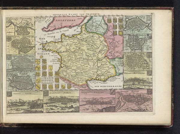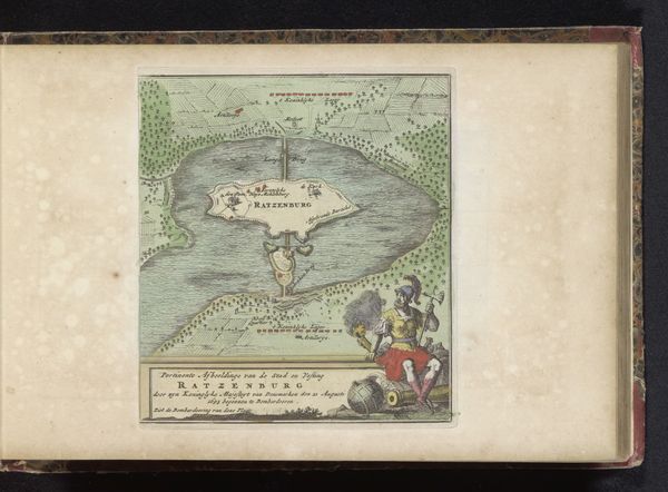 This print, titled "Zeeslag in de baai van Vigo, 1702," likely made in the early 18th century, depicts a naval battle. Though the artist is unknown, the work speaks volumes about the era’s focus on exploration, conflict, and information dissemination. The map has been realized through meticulous engraving. The fine lines defining the landmasses, ships, and even the rendering of human figures suggest a highly skilled hand. The application of color, whether by hand or early printing techniques, adds depth and clarity to the scene. Notice how the sea is carefully differentiated from the land. Maps like these were not just about geographical accuracy. They were tools of power and trade. This particular image captures the Battle of Vigo Bay, a pivotal moment in the War of the Spanish Succession. The print becomes a commodity, a collectible item that celebrates military prowess. By examining the materials and the printing process, we can start to understand the motivations behind its creation and circulation, and appreciate its significance in shaping public opinion about historical events.