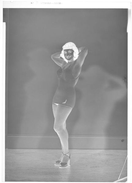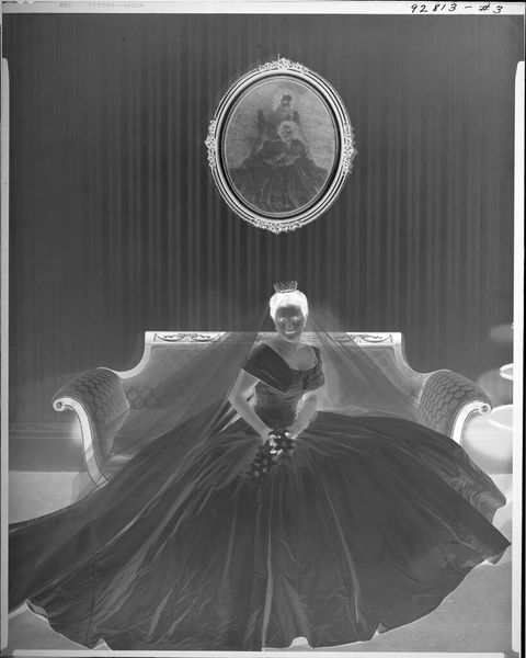 Editor: This is an untitled photograph of Eugenie Stoll in a formal gown by C. Bennette Moore. The negative image gives it an ethereal, almost dreamlike quality. How do you interpret this work within its historical context? Curator: This photograph, with its dramatic reversal of light, challenges conventional portraiture of the time. The artistic choices made in presenting a society figure this way reflect a broader shift in how photography could be used as a form of artistic expression, rather than simple documentation. The sitter's presentation, therefore, begs the question: does this aesthetic choice reinforce or subvert existing social power dynamics? Editor: That's interesting! It never occurred to me how it fits into the social context. Curator: Indeed. Thinking about how this image would have been received and understood reveals much about the public role of art and the politics embedded within seemingly simple portraits.